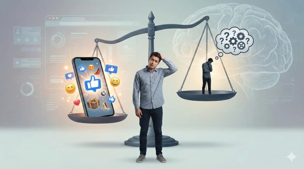 現代において比較の苦しみが深刻化している最大の要因はSNSです。昔なら「隣の家」レベルの比較で済んでいたものが、今では世界中の成功者やキラキラした日常が24時間流れ込んできます。しかし、SNSで見えているのは、その人の人生の「ハイライト」に過ぎません。編集され、美化された一瞬を、自分の日常の「舞台裏(悩みや苦労)」と比較すれば、落ち込むのは当然です。この構造的な不公平さに気づくことが重要です。