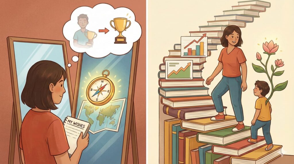 他人との比較(横の比較)をしてしまいそうになったら、すぐに「過去の自分」との比較(縦の比較)にスイッチします。「1年前の自分と比べて、できるようになったことは?」「3ヶ月前より成長した点は?」と考えます。どんなに小さなことでも、過去の自分より進歩している点を見つけることで、自己効力感が高まります。ライバルは常に「昨日の自分」に設定することで、健全なモチベーションを維持できます。